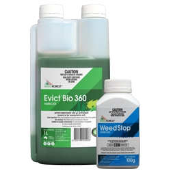 Weed Stop Combo is a professional weed killer combination. Evict Bio 360 provides control of existing weeds. Weed Stop is a long lasting weed killer and forms a protective barrier in the soil which prevents most new weeds from emerging for up to 9 months after application. Use this product where total weed control is required and maintaining bare ground weed control is desirable.